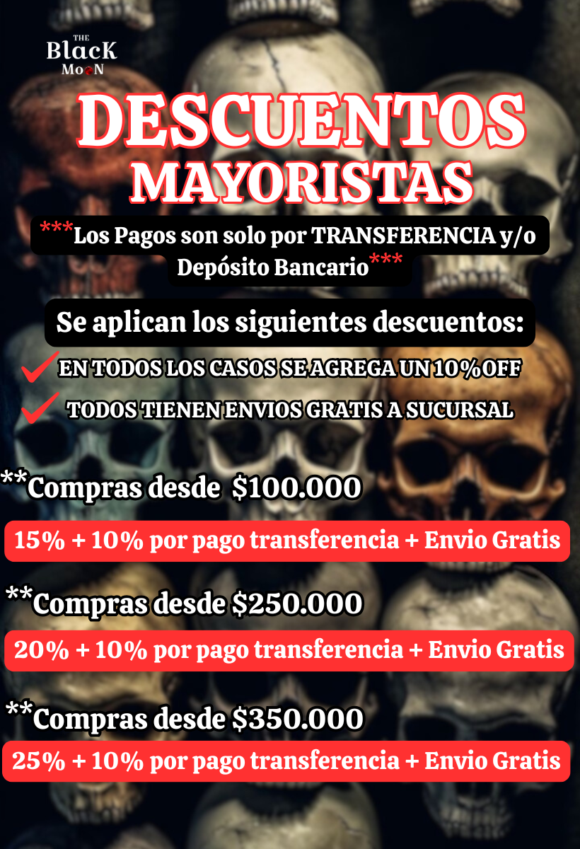 🦴💀 ENVIOS GRATIS A PARTIR DE $100.000 A SUCURSAL DE CORREO ARGENTINO DE TODO EL PAIS 💀🦴 10% OFF CON TRANSFERENCIA BANCARIA 💀🦴 3 Y 6 CUOTAS SIN INTERES DESDE $50.000 CON DÉBITO/CREDITO 💀🖤 MONTO MINIMO DE COMPRA $20.000