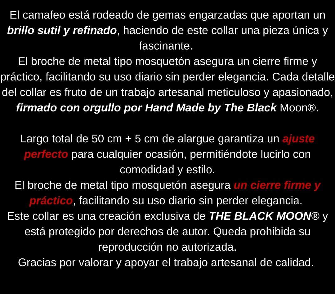Todos los diseños y creaciones de collares, aros, y otros accesorios visibles en este espacio son propiedad exclusiva de THE BLACK MOON ®